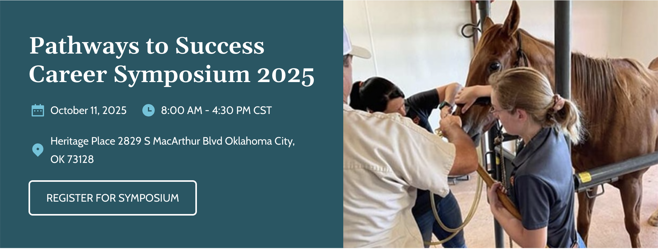 “Pathways to Success” Career Symposium is a unique networking opportunity for veterinarians, veterinary students of all four years, and industry sponsors held annually at Heritage Place in Oklahoma City. The purpose of this event is for veterinary students, with an equine focus, to network with equine practices to learn about externship, internship, and job opportunities that exist. Students are also given the opportunity to spend time and network with industry representatives about product lines, services offered, and begin forming relationships with industry representatives in attendance.